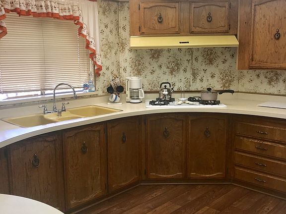2 Bedroom 2 Bathroom 64x24 ft mobile home. Highly desired corner lot, located in the Gates of Spain Mobile Estates park. Master bath includes; double sinks, sunk-in-tub and separate stall shower. Guest bathroom has large walk in shower with Jack and Jill entry from second bedroom and living space. Bright open kitchen with eat in area that opens into the family room. Washer and dryer included. Refrigerator included. Large formal living and dining room area with built in china hutch. Space rental $585 per month Large front porch with beautiful mountain and sunset views.
