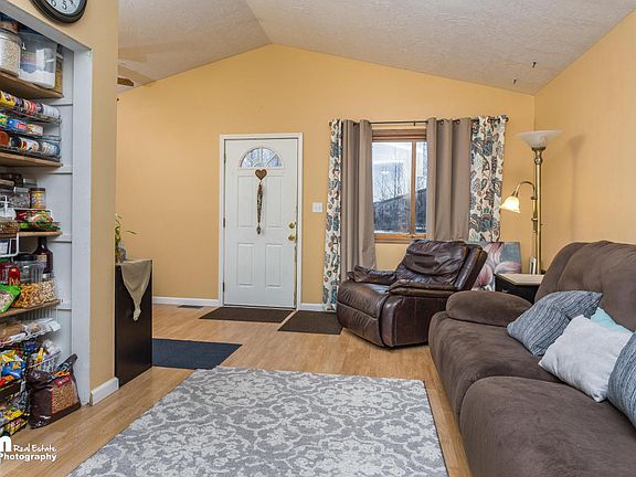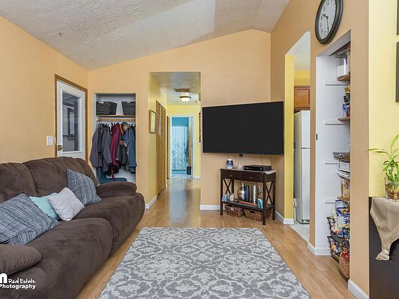 Inviting two bedrooms one bathroom home nestled in Anchorage. This traditional ranch style floor-plan is excellent for gathering with a free-flowing reveal of the house. Recent improvements include new paint throughout the home, giving it a fresh feel. This home features a vaulted ceiling in the living/dining room enhancing the space while still keeping a cozy environment. Enjoy the large fully fenced backyard that includes a storage shed for optimal extra space.