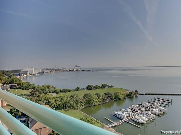 Breathtaking views from the 15th floor of this 2 bedroom, 2 bathroom condo. Completely updated in 2021. Two primary bedrooms with walk in closets make this condo unique. Spectacular views of the James River. Located in a prime and convenient waterfront location, this condo has the perfect blend of luxury, comfort and beauty. An open floorplan integrates living, dining and kitchen areas that create an inviting and spacious atmosphere. Easy to care for luxury vinyl flooring in all living spaces. The windows showcase panoramic views of Leeward Marina and the James River sunsets. Updated kitchen with granite and stainless appliances in 2021. Updated primary baths. New Rudd HVAC July 2023 and hot water heater 2018. Condo fee covers water, sewer, trash, cable TV, 24 hr. security service, exterior maintenance, elevators and planned community activities. Gated community and parking garage with private outside storage(7'x4') next to assigned parking space.