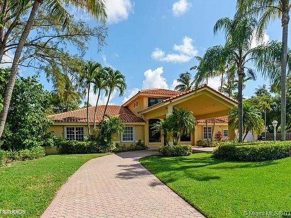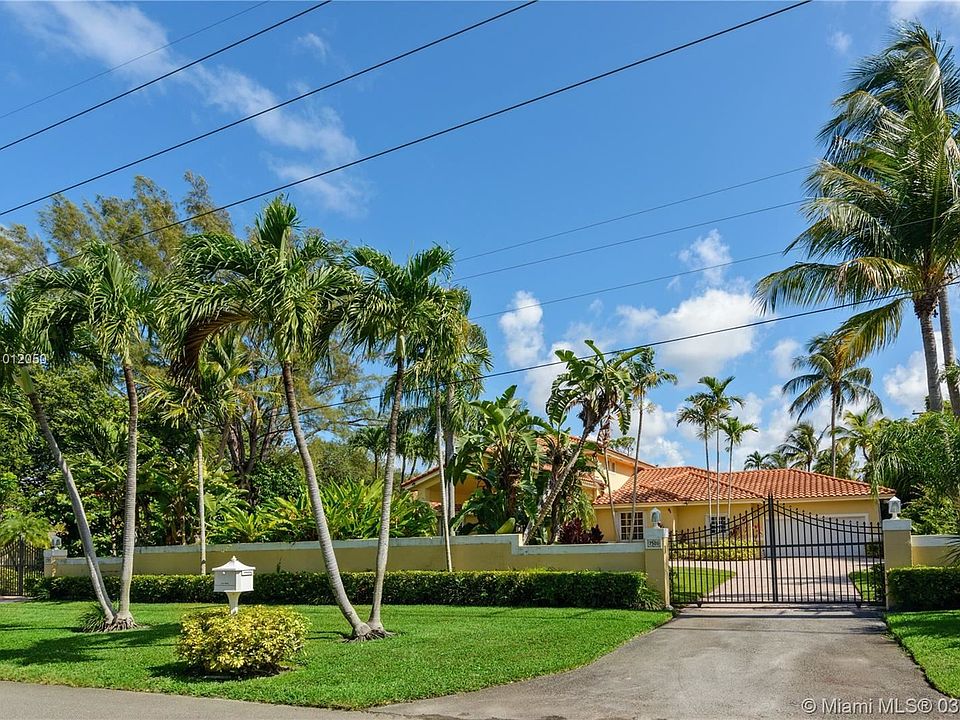 Beautiful gated acre estate in Prime area! Built in 1994 and lovingly maintained, this wonderful home welcomes you thru a porte-cochere and a double height entry foyer. High ceilings throughout and spacious entertainment areas, granite island eat in kitchen, lovely built-ins in large library, private split bedroom wing & grand master suite. This resort style property offers fabulous views of the manicured Tropical backyard with sparkling pool /jacuzzi, summer kitchen, covered terrace, generator, gazebo with bar and a large Chickee Hut. Room for tennis Court Centrally located, close to excellent schools, Shopping and major highways! Ready for your personal touches