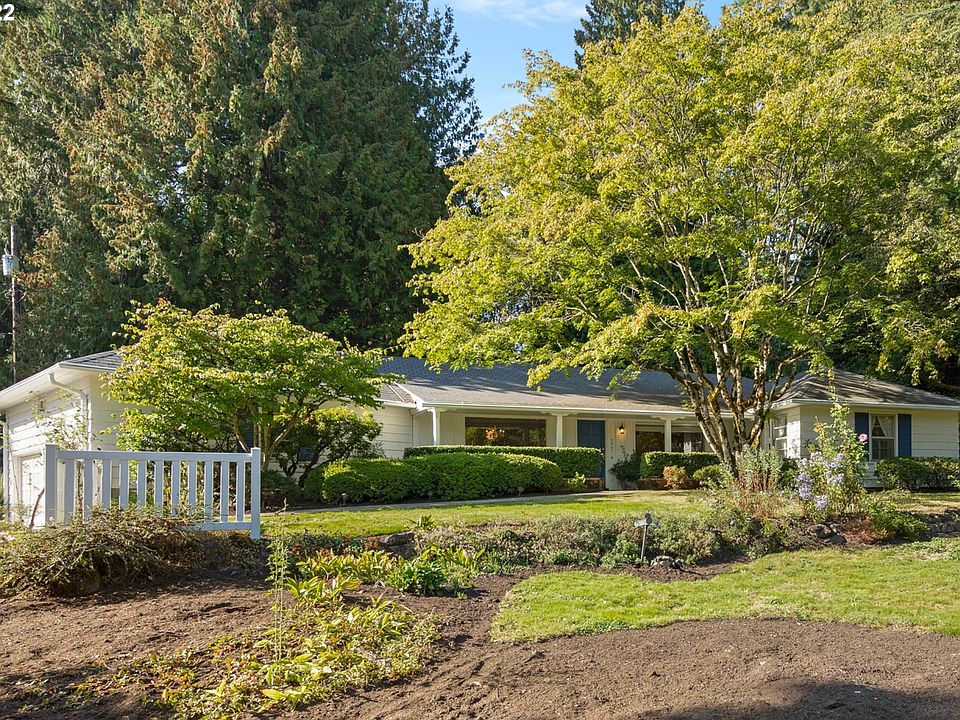 Fabulous mid-century on .63-acre park like setting. 1750 SF single level w/660 SF unfinished basement. Wall to wall hardwood floors. Natural sun drenched interior surrounded by picture window views to lush landscape & wooded lot. Spacious kitchen open to entertainers dining room. Generous living room features panoramic back yard view. Your own garden retreat & Koi Pond just minutes to downtown PDX, shopping, dining & transportation. Solid home w/unlimited potential. 3 full bedrooms, tiled bath.