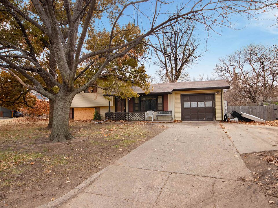 Charming split-level Wichita home is looking for new loving owners! Come home to this 3 bed, 2 bath, 1 car garage residence with spacious driveway for off-street parking. The property needs some TLC but has good bones. The great room extends to a dining nook and sectioned-off kitchen with its functional granite island counter with plenty of drawers for storage. Each living zone has well-defined boundaries, but they all come together as one welcoming space for the busy family. Three rooms, each with its own closets and built-in shelves, enjoy the privacy of the upper level and share the common bathroom. At the fully-finished basement is a decently-sized recreation room and bonus bathroom. Plenty of storage as every room has its own built-in shelves, drawers and cabinets. The backyard even has its own shed dedicated for more storage. A full-privacy fence encloses the lot. The living space is extended from the dining nook to the outdoor patio and swimming pool accessed through double sliding doors. The home needs renovation work to modernize the interior design, but it is in good condition given the home's age. With its ideal location, it is a perfect choice for a family who wants to be minutes away from major commercial establishments and schools. This property is a good fixer-upper for investors or for families open to do home renovation in exchange for securing a strategically-located home in the heart of Wichita. Plenty of interest in the neighborhood. Call us today for a private showing and take advantage of submitting the first offer to the motivated seller! ***Seller is calling for highest and best offers to be turned in by Monday, December 12th at 9am***