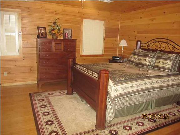 Country living at its best! Log home sitting pretty on one and one/half acre lot. Split bedroom floor plan. Master bath has separate shower and jacuzzi tub. All windows have plantation shutters. Floors are bamboo. The cathedral ceiling in living area makes the space feel massive. Rock fireplace with hearth and mantel. Separate laundry room. Immaculately maintained - inside and out. Big porches off front and back. Attached carport. Two storage bldgs.
