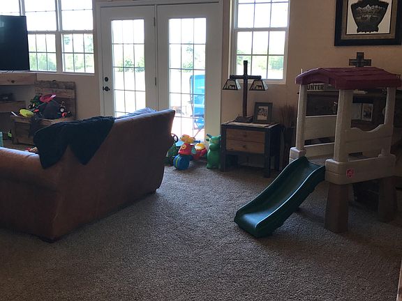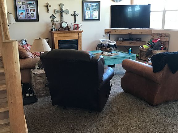 Beautiful 3 bed 2 bath home on 7 acres. Located just 3 miles south of town on paved roads. Large living room with propane fireplace, log railing, and plenty of windows. Custom concrete countertops, sinks, and floors in kitchen, bathrooms, and laundry room. Large master bedroom and bath with big walk-in closet. Nice composite deck overlooking beautiful pond.