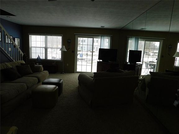 Very nice, 2 bedroom, 1.5 bath condo @ Snug Harbor. Situated on the water and includes a boat slip w/shore station. Many updates, including slate floors, granite countertops, newer stack washer/dryer, newer hot water heater, and new garage door w/opener. Includes an awning over the patio area, which was recently poured in 2017. Newer, high quality carpet and padding. Some furniture (upstairs) is optional. Amazing full bath upstairs with marble tile and custom cabinetry.