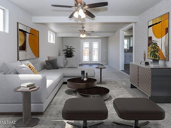 Completely remodeled 3BD/2BA slump block ranch. Open floorplan with living room/dining area. Beautifully updated galley kitchen features breakfast bar, dual sink, plenty of cabinet & counter space plus new stainless appliances, all appliances stay! Spacious main bedroom with updated en suite and shower surround. Arizona Room.Other new upgrades include wood laminate flooring & carpet, interior doors, exterior & interior paint, windows and light fixtures; new A/C. Ceiling fans throughout. Roof has recently been maintained. Large enclosed backyard with patio area, perfect for outdoor entertaining! Covered front porch. Corner lot. Convenient to schools, parks, shopping, I-10 & Davis Monthan AFB. Come and take a look today!