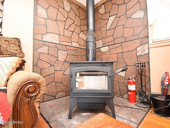 Welcome to your charming home nestled on a peaceful dead-end street! This delightful residence features 3 bedrooms, 1 bath, and a host of inviting amenities and potential that promise a comfortable and cozy lifestyle. As you step inside, the heart of the home beckons with a brand-new wood-burning fireplace, casting a warm glow that adds both character and comfort to the living room. Imagine relaxing by the fire on chilly evenings, creating cherished moments with family and friends. The spacious eat-in kitchen is a delight, offering a perfect blend of functionality and style. With ample counter space, this kitchen is poised to inspire culinary creations and memorable gatherings. Whether you're enjoying a casual breakfast or hosting a dinner party. Step outside onto the expansive deck that overlooks a huge lot, providing a serene retreat for outdoor enjoyment. Picture yourself unwinding in the hot tub after a long day, or hosting summer barbecues with friends. The deck is not only a perfect spot for entertainment but also a gateway to the vast backyard, offering endless possibilities for gardening, play, and relaxation.