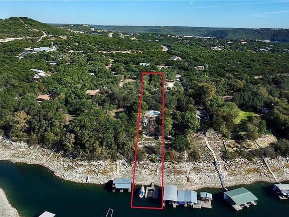 A rare opportunity exists to secure this lake front oasis. Privacy abounds! Large trees shade the entrance . Swim , fish, boat, sail, bird watch or just relax. You are just a few steps away from the magnificent water front of beautiful Lake Travis. Balconies and terraces offer sweeping views of the water. Clear views at night for stargazing. Expansive views throughout this cozy home. Crown molding throughout, ceiling fans throughout, 2 AC units, surround sound, fantastic media room, fully equipped ,(equipment conveys), office is large enough for 2 people to work out of , furniture conveys and many more features in this beautiful home. There is also a log cabin style playhouse , or can be used for storage.