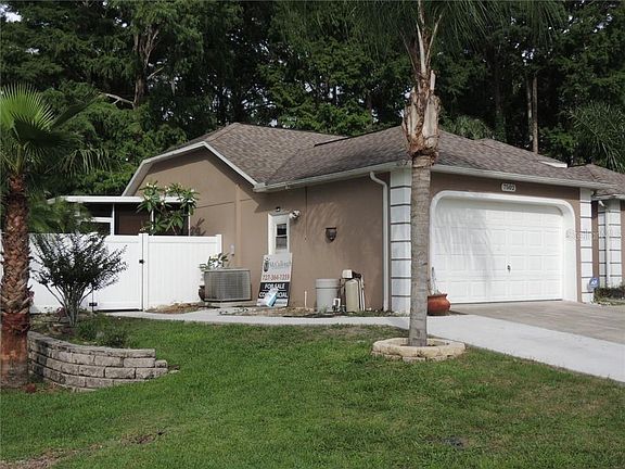 One or more photo(s) has been virtually staged. Super efficient home with Upgrades - 4 beds, 2 baths, 2 car garage plus enclosed screened porch and then added paver open patio in back yard. Conservation views with no neighbors on two sides. New Kitchen w/ Granite Counters and 42" expresso Cabinets. The guest bathroom also upgraded w/ granite, wood, and elongated toilet and large tiles. The views and privacy are vast as the home sites on an old golf course that is no longer in use so it's great for walks in nature and riding bikes. The neighborhood is golf cart friendly and close to downtown New Port Richey. Home has a firepit on back patio and mature landscape with beautiful plants and trees and grass will be maintained by professionals so you don't need a mower (included in rent). Washer/Dryer inside. Current tenants are leaving this month but will be fine helping with showings any time. This is appointment only but can show within a few hours - please contact broker/listing agent.