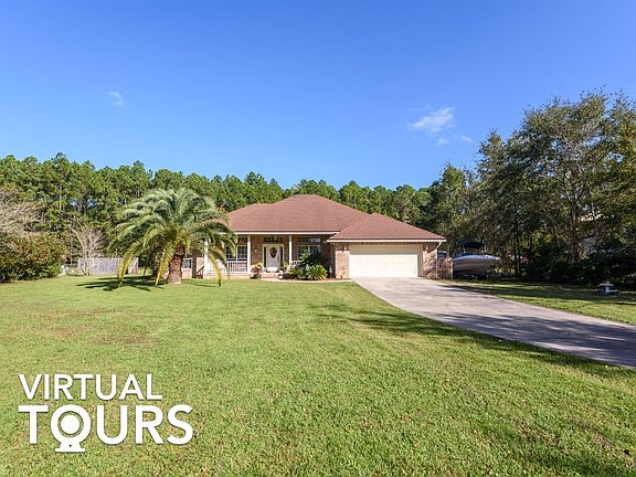 With an acre of lush land and close-by Nassau river access, what's not to love about this 3 bd / 2.5 ba home in Yulee? Other highlights include the split floor plan, office, and entertainer's pool backyard! Notice the long driveway, expansive lawn, and covered porch as you approach the home. Inside, you'll find crown molding, carpet flooring, and bright natural lighting. The office sits to the left of the tiled foyer, across from the formal dining room, complete with wainscoting and a contemporary chandelier. Up ahead is the kitchen, equipped with stainless steel appliances, updated cabinet hardware, tile flooring/backsplash, new epoxied countertops, bar seating, and a breakfast nook with French doors to the backyard! Behind the kitchen, there is a laundry room, half bath, and primary suite, offering a tray ceiling, two vanities, a garden tub, walk-in glass door shower, water closet, and walk-in closet! Relax in the cozy living room, where there is a brick gas fireplace and two glass doors to the back patio. One of the remaining bedrooms has a walk-in closet and both have access to the full hallway bath. The backyard features a covered patio, above-ground pool, huge green space, and a beautiful wooded backdrop! Boat/RV parking. Community water and boat dock access! Located near Plummer Creek, Seton Creek Historic Preserve, and Four Creeks State Forest! Easy access to hwy 200, I-95, JAX Airport, and Jacksonville. Buyer should verify all information.
