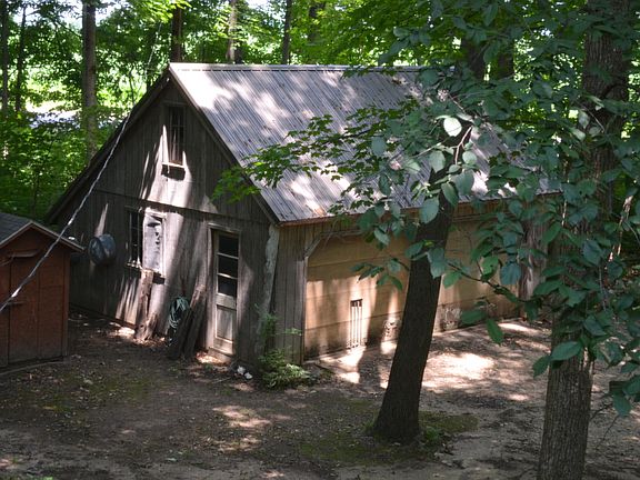 Beautifully Unique Property nestled in the woods that transports you back in time. So much privacy and quietness in the wooded acres where wildlife abounds that you feel like you are the only place in the world. You instantly have a peaceful feeling when you walk thru the door. Home has an open concept with wood floors, walls are wood planks, living room has a cathedral ceiling with a stone fireplace, kitchen has lots of counter space and there is a main floor laundry area off of the kitchen. Upstairs has 2 bedrooms, a half bath and a loft area that over looks the living room with a 3rd bedroom area. Basement has lots of storage space. There are several porches around the home for enjoying the beautiful 2.8 acres of woods, one of which is a screened in porch. Property also has an