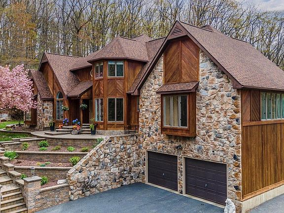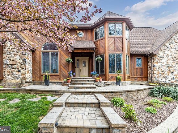 You'll fall in love with this cedar and stone tudor home tucked away in the woods with privacy, yet so close to everything important (hardware store, shopping, restaurants, grocery stores, movie theatre, commuter routes). Your friends will be wowed with the extensive paver work as they walk up to your front door. The two-story foyer greets you with gleaming hardwood floors and a view of the loft above. The 17 foot living room has a stone fireplace with pellet stove and windows galore for natural light. Step down to the sunroom where you can sit and watch nature while enjoying your coffee. The main floor owner's suite has a tray ceiling, walk-in closet, a luxury bath with jetted tub, double sinks and beautifully tiled shower and floor. Off of the owner's suite is a main level office that could also be used as a nursery. The kitchen has new quartz counter tops, lots of cabinetry including pull out pantry drawers, stainless appliances including newer double oven stove, dishwasher & microwave 2020, garbage disposal 2015 and leads to the spacious dining room full of windows. The main floor laundry room has extra cabinetry, a built-in ironing board and front loading dryer and washer that automatically fills the tub with laundry detergent and softener for you. The powder room is one of the largest you'll see and it is right off the family room over the garage which is `24 x 24'.... so large! Upstairs you'll find two additional bedrooms, a full bath, a walk-in closet, a cedar closet and 3 huge walk in attics for storing all your goodies. The lower level is finished including two recreation rooms, a full bath and a room with closet that could be used as a second office or bedroom 4 although this is permitted as a 3-bedroom home. No city taxes, No HOA. Roof 2015, (50yr shingles), HVAC 2016 (2-Unit Carrier Split System), Pellet Stove 2019, HWH 2016 (85 gal hybrid super efficient), Garage Doors 2017 (Insulated), heavy duty railing on concrete deck 2016, particulate blowdown filter and sump pump 2018, Driveway re-paved 2015, septic pumped and inspected right before going on market, radon remediation, not just extensive but massive amount of hardscapes (you can walk all around the house and not touch grass), huge 675sf concrete patio/elevated concrete deck, huge paver patio and sitting wall. Three car garage, whole house fan, the list goes on and on. Sellers are MD licensed real estate agents.