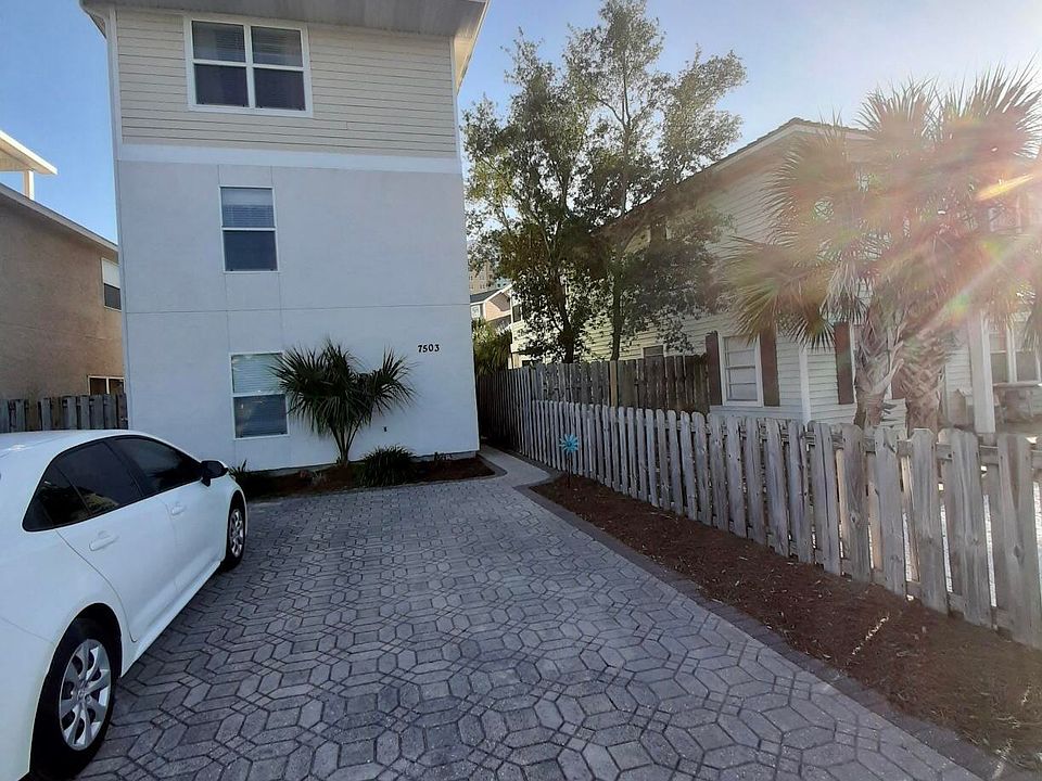 CURRENTLY UNDER CONTRACT, SELLER ACCEPTING BACKUP OFFERSResort style living only a 4 minute walk to the beach! Rick Seltzer Park is across Thomas Drive. This beautiful 3 bedroom 3 bathroom beach house is ready for rentals or full time occupancy. The first floor offers a full bedroom and full bath with laundry and living room. The second floor boasts a spacious kitchen with balcony and another full sized bed and bath. The third floor offers a master suite with balcony and fireplace and very spacious master en suite and a wet bar. Very nice patio off the first floor with wonderful views of the resort style pool. The pool is only shared by 5 homes. Hurry and