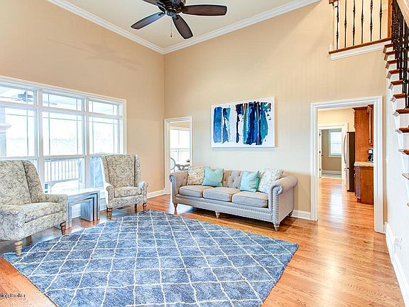 THIS IS A BEAUTIFUL CUSTOM 5 BR 5 BA CUSTOM BUILT BRICK HOME WITH FINISHED WALKOUT BASEMENT IN BRENTWOOD, ONE OF OLDHAM COUNTY'S PREMIER NEIGHBORHOODS! The main level offers hardwood flooring and custom molding throughout. Formal Dining Room with wainscoting, 2 Story Great Room with Fireplace and built in shelving. Gorgeous Eat in Kitchen with granite, breakfast bar, Hearth Room with built ins and a second Fireplace. First floor Master Suite with large walk in closet, First floor laundry, Half Bath. Upstairs, you'll find 3 Bedrooms, 2 full Baths and additional storage. The finished Walkout Basement features A Family/Theater Room, Custom Wet Bar/Game Room, 5th Bedroom, Full Bath, Workout Room, Storage, John Deer Tractor Room. Walk to the Pool, Clubhouse/Tennis. A Must See!