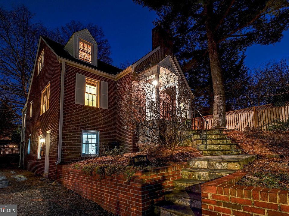 Welcome to 7503 Carroll Avenue! A beautifully updated brick Cape Cod in highly sought-after Takoma Park. Generous room sizes and the comforts of a traditional floorplan with delightful architectural details abound. Built in 1940, this enchanting home boasts gleaming hardwood flooring, a mosaic tiled wood burning fireplace, recessed lighting, floating display shelving, custom millwork, and lovely archways.  This distinctive residence offers a stylish renovated kitchen, a light-filled living room with wood burning fireplace, a spacious dining room with custom built-ins and a sphere chandelier, and a versatile bonus room / office that opens to a fabulous enclosed porch with a tongue and groove ceiling. The gourmet kitchen offers stainless appliances, solid surface counters, a gas double oven, subway tile backsplash, and a sun-drenched breakfast room with floating wood shelving that offers access to the porch providing great entertainment flow. The main level is complete with an updated powder room. The second level has three bedrooms and an updated full bathroom. Downstairs is a spacious walk-out family room with great natural light, durable flooring, and recessed lighting, as well as a fourth bedroom, an updated full bathroom, a den, and a laundry / mudroom. The exterior is that of a beautiful classic brick home with complementary landscaping!