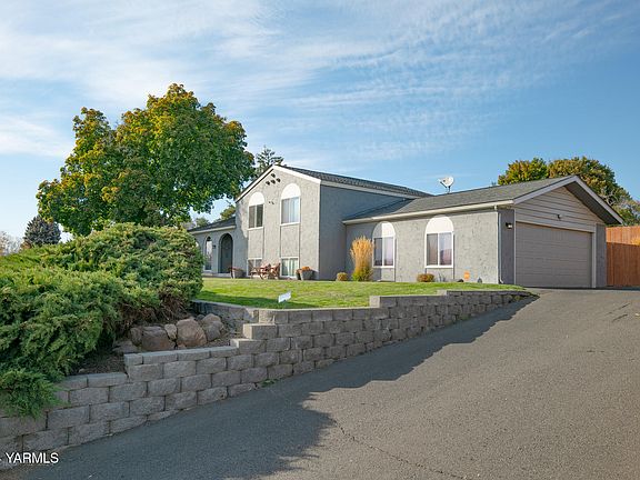 This tri-level 4-bedroom, 2.5-bath home blends comfort and style in a quiet West Valley neighborhood. With two spacious living rooms, one featuring a cozy fireplace, there's plenty of room to relax or entertain. The kitchen boasts sleek granite countertops, and durable vinyl flooring runs throughout the main living areas for easy maintenance. The master bedroom serves as a private retreat, complete with an en-suite bathroom.Outside, enjoy professionally landscaped grounds with in-ground sprinklers and a large fenced backyard featuring a deck and jacuzzi pad, ideal for gardening and outdoor entertaining. Perched on a hill, the home offers serene views of Ahtanum Ridge. The two-car garage and expansive driveway provide ample parking space. With a private setting just minutes from shopping centers and close to the hospital, this home offers the perfect balance of convenience and tranquility. Located in the sought-after West Valley School District, this gem won't last long!