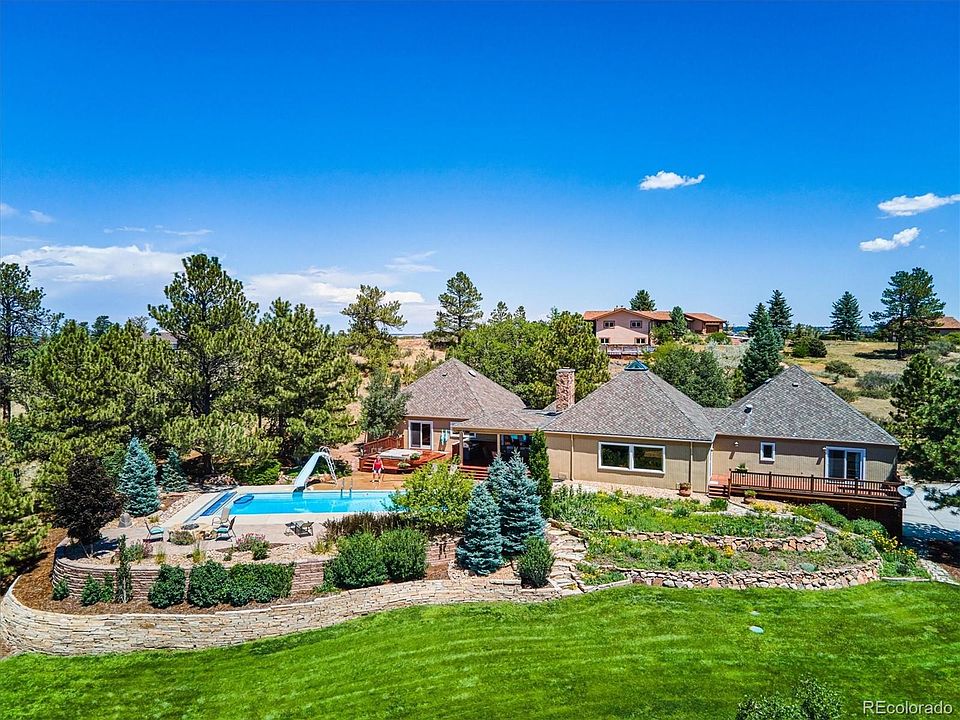 Here's Your Opportunity to Live in the Sought After, Desirable, Butterfield Community*Private, Quiet, Country Living with Close in Town Amenities on 5 Acres with Incredible "Million Dollar" Mountain Views*Exceptional, Unique, Remodeled, Custom Ranch w High End Finishes*The Three Peaks Design Centers on the Spacious, Open, Great Room/Kitchen Area, with Full Wall Moss Rock 2-sided Fireplace, Walks Out to the Covered Deck-Patio and the in-ground Heated Pool & Spa*The West Peak features the Large Master Bedroom Suite with walk-out access to Pool & Spa*Relax in the 5-piece Master Bath Clawfoot Tub or the Steam Shower*Plenty of space in the Walk-In Closet*A Second Bedroom, Hall Bath, Office & Library are Close By*The East Peak features the other 2 Bedrooms, Full Bath, Laundryroom & Sitting/Familyroom with Walk-out Access to a private deck*The Drive Under 3-Car Garage offers Additional Storage Space and Utility Room*New IR Roof & Gutters w Covers in 2019*New Well & Pressure Tanks in 2020* 588' deep*Tankless "Navien" Water Heater*HALO Treatment System*Newer Windows*Numerous Other Update/Upgrades*1600sqft 2-Stall Barn w Tack room, water, electric & 2-High Clearance, Overhead Doors*Award Winning Douglas County Schools*Don't miss this Chance on a True "Colorado" Home