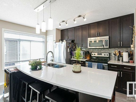 Welcome to Novus Townhomes in Granville-West Edmonton, right off the Henday with easy access anywhere in the city! This three bedrooms townhome is full of light with a south facing kitchen. It features hardwood flooring and lovely tile, Stainless Steel appliances, and a huge beautiful upgraded kitchen island with quartz countertop. The main floor also has a lowered entry, and powder room. The upstairs hosts 3 carpeted bedrooms, has an en-suite bath with walk in shower, and a main 4 piece bath. These lovely units have a gated front yard, attached double car garage, big laundry and storage area. Modern design on every floor, exceptional exterior with Hardy Board and Vinyl siding, as well as maintenance free vinyl fencing. Fantastic neighborhood with easy access to schools, shopping and directly across from walking trails!