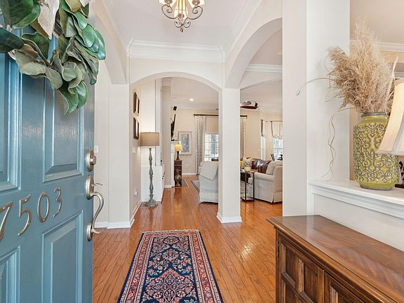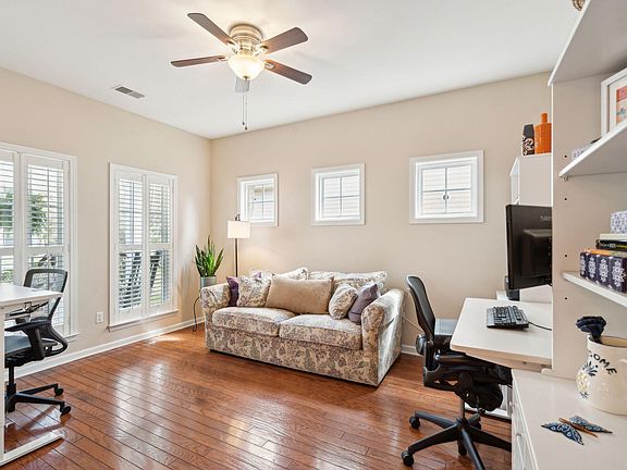 Experience spacious, single-story living in this charming Lowcountry home within Tanner Plantation's The Reserve. A welcoming landscaped yard and inviting front porch set the stage. Inside, high ceilings amplify natural light and complement the open floor plan. A versatile flex space serves as an ideal home office or den, while a separate formal dining room adds style. The living room, anchored by a fireplace and built-ins, seamlessly flows into the kitchen and breakfast nook. A private and generous primary suite resides on one side, with secondary bedrooms and a full bath on the other. An expansive screened porch extends living space and overlooks a well-maintained, fenced backyard. The Reserve's exceptional amenities include a community dock, playground, covered picnic area, and pool.