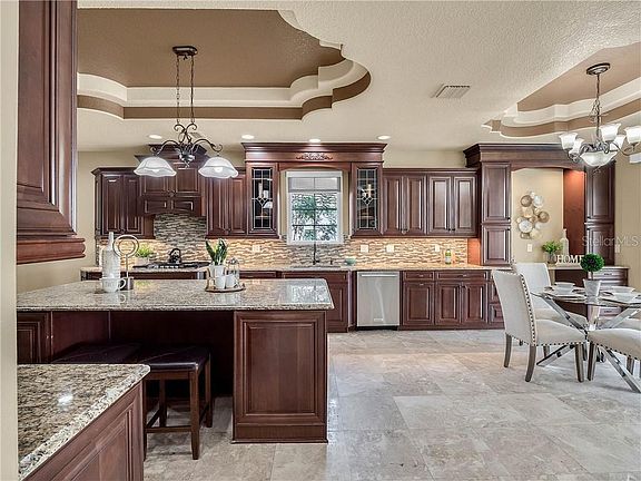 - Interior Features: Ceiling Fans(s), Eating Space In Kitchen, High Ceiling(s), Master Bedroom Downstairs, Open Floorplan, Split Bedroom, Stone Counters, Walk-In Closet(s), Crown Molding, Solid Wood Cabinets, Kitchen/Family Room Combo, Built in Features, Window Treatments, Cathedral Ceiling(s), Vaulted Ceiling(s), Wet Bar, Tray Ceiling(s), Coffered Ceiling(s)