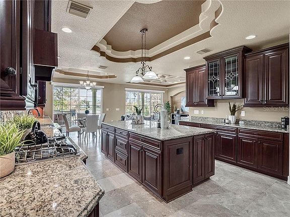 Masterful design and modern luxury are uniquely embodied in this beautiful 5 bedroom, 5 bath waterfront home. As you drive up the expansive brick paver driveway you're met with mature landscaping and a 3-car garage. The grand entryway draws you into a layout made for entertaining. The home boasts an open floor plan with wall-to-wall sliding glass doors showcasing views of the water. The patio features a summer kitchen and sparkling swimming pool with sun shelf. A full pool bath is located on the first floor along with an office that could be used as an additional bedroom. The gourmet kitchen is updated with premium finishes and fixtures including custom cabinets, granite counter-tops, wine fridge, a gas range, and stainless steel appliances. Spacious room sizes include two master suites, one on the first floor and another on the 2nd floor, both with water and pool views. Every detail was meticulously selected and quality crafted in each of the master suites. Both divine master bathrooms present a soaking tub and double vanities. Two bedrooms on the second floor share a jack & jill bathroom and the 5th bedroom has it's own full bath. The second floor also includes a home theater room that is fully equipped with surround sound and an oversized balcony overlooking the saltwater pool and waterfront. Ideally located in a great school district, and 10 minutes to Disney! Windermere also offers great local entertainment, dining, boutique shops, Butler Chain of Lakes access, tennis courts, and golfing. This is it!