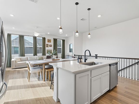 With a lot of natural light this modern residence offers cool neutral finishes and thoughtfully designed living spaces. The chef's kitchen features a large island, quartz countertops, stainless steel appliances, and a refrigerator. The spacious primary suite provides ample space with a double vanity. Additional features include an attached two car garage with plenty of space for storage.