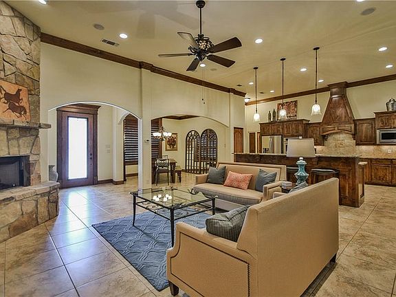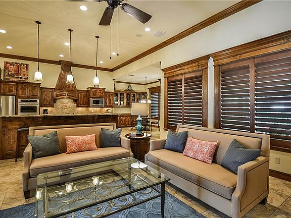 Immaculate custom home with many recently added Improvements. Open concept that now overlooks a new cedar pergola 33x14 with movable slate screen sides, new ceiling fans and 2 additional electric outlets. New 6 in rain gutters and Iron fence. New Solar Screen. Additional landscaping with dry scape and repaired sprinkler. Great house for entertaining outside or inside in the gourmet kitchen with granite counter top, double oven, Plantation shutters, an adjoining room for addition pantry or computer center. Great room with gas fireplace and built-in cabinets. Remodeled master bath and custom closet. A beautiful study with built-ins. High ceiling and stained crown molding. Golf cart garage, large upstairs storage