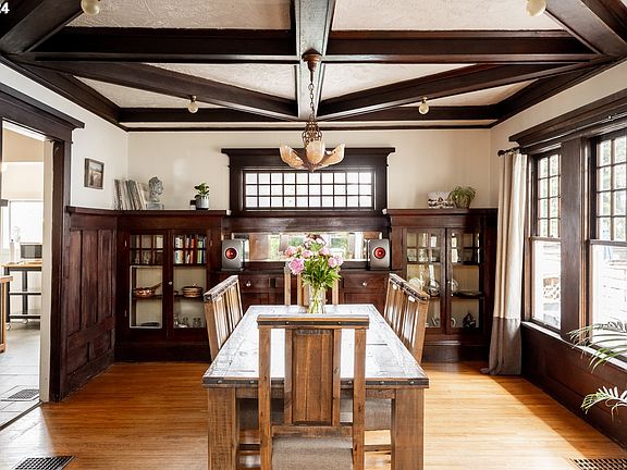 Welcome to this charming 1913 Craftsman Foursquare plus beautiful studio/guest house with income producing sublease or workspace opportunity! Set back on a quieter section of Woodstock just one block away from Mt. Scott Community Center and a short walk to numerous restaurants. This property exudes historical charm and modern comfort, featuring a large welcoming porch and a beautifully landscaped front garden that includes a fig tree, grapes, berries, & more. Inside, the home boasts beautiful period details throughout, including unpainted wood trim, built-ins, dining room with a box beam ceiling, and a fireplace with a Columbia River rock surround. There are three spacious bedrooms upstairs, along with a staircase leading to a partial attic, offering additional storage. The office provides a serene view of the private backyard, perfect for remote work or creative projects. The meticulously landscaped backyard is ideal for entertaining or relaxing. Garden beds and a pergola offer a tranquil spot for gardening enthusiasts or outdoor gatherings. The Studio: A stunning custom-built studio/guest house in the backyard can serve as a potential income-producing short or long term sublease opportunity or workspace. It includes a full bath, loft, mini-split system, ceiling fan, and kitchenette. A retractable fence separates the guest house from the main yard, ensuring privacy for both the main house and the studio. Recent updates include exterior and interior paint, blown-in fiber insulation, radon mitigation system. Upper level includes a heat pump/AC system, Indo windows in the bedrooms, refinished bathroom floors and tub, a new vanity and hardware. Office has new drywall, crown moulding and new vinyl windows. Kitchen has sealed butcher block countertops and garbage disposal. Available for rent beginning January 1, 2025. Unfurnished. For rent by owner. Owner is willing to negotiate lower rental price for only the main house. All applicants must pass credit and background checks. Application fee is $40, which is nonrefundable as it is used to pay for credit and background checks. No indoor smoking please. Small to medium sized dogs and cats allowed with additional pet deposit. One year lease term. Tenant responsible for utilities and yard maintenance.