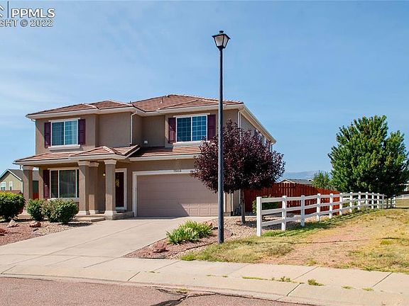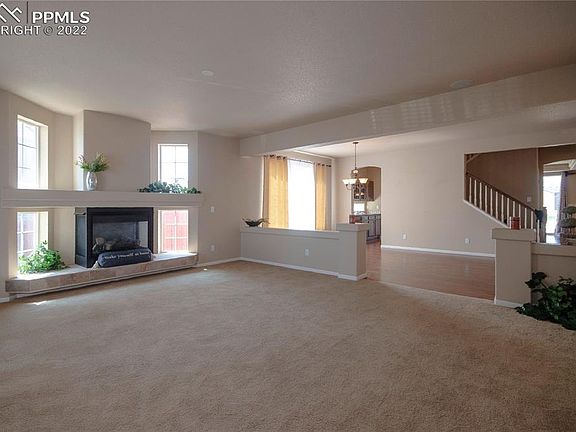 Stunning 2-Story Open Floor Plan with Plenty of Upgrades! Entering this Lovely Home you are greeted with a Formal Living Room which Features the Warmth of a Bay Window Gas Fireplace Gas. The Spacious Formal Dinning Room includes a Gorgeous Butlers Pantry to the Kitchen. Make your way into the Grand Kitchen complete with Decorative Arches, Gourmet Kitchen with Stainless Steel Double Ovens, Quartz Counter-Tops, an Oversized Island, Upgraded Lighting, plus Loads of Cabinetry. The Large Family Room Opens to the Kitchen which is Great for Entertaining and Includes a Custom Built-in Entertainment Center. Enjoy your own Private Study on the Main Level! Make your way Upstairs to the Exceptional Loft which Features a Custom Built-in Entertainment Center. French Doors open into an Exquisite Master Suite which Includes a Private Balcony to Enjoy the Evening Sunsets with views of the Mountains and Pikes Peak, Plus an Attached Master Bathroom complete with Double Vanity Sinks, a Soaking Tub, Walk-in Shower and Huge Walk-in Closet. Upstairs are 3 Additional Spacious Bedrooms with Walk-in Closets! The Laundry Room is on the 2nd Level for Easy Access. Coffered Ceilings Frame this Beautiful Home with Surround Sound/Multi-Media Speakers Throughout the home. With one of the Largest Lots in the Sub-division that backs to the Park Area, you'll have Plenty of Room in the Back Yard to Entertain and Enjoy an Oversized Concrete Patio with Full Mountain Views! Additional Features that Bring So Much Value to this Home Includes: A Concrete Tile Roof~ Energy Efficient Built with 2x6 Construction~Central Vacuum~2 Furnaces~2 A/C Units~and Landscaping with Sprinkler System. Also Included is a, Shed in Backyard, and an Alarm System with Intercom. This Beautiful Home is Convenient to Schools, Shopping, Entertainment, Restaurants and Peterson AFB! The Perfect Home in the Perfect Location to Create Your Memories! Schedule Your Showing Today!