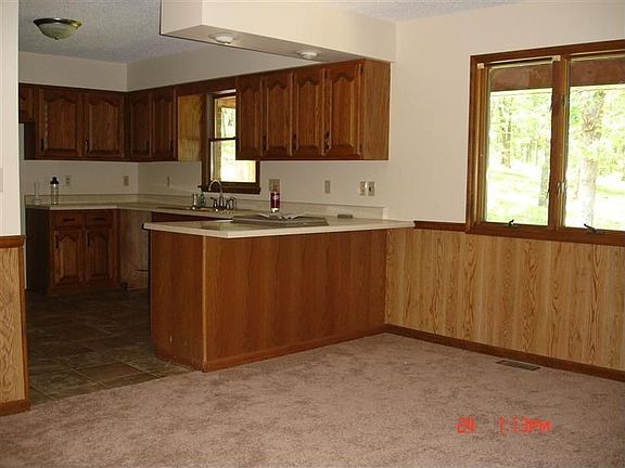Fantastic opportunity. Priced $25,000 less than last appraisal. Nice ranch in a very private & peaceful location. This is a nature lover's dream home located on 6.43 mostly wooded acres. New carpet & vinyl throughout. Spacious kitchen with plenty of nice oak cabinets. Large main level laundry room just off kitchen. FAE furnace plus wood furnace. Garden shed plus newer barn/shed.