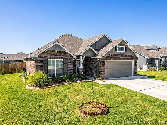 This beautiful newer 4 bedroom, 2 bath full brick home is situated in one of Owasso's most popular neighborhoods, built by Simmons. The exterior of the home features a classic brick facade, which offers both durability and timeless style. Inside, the open-concept floor plan is perfect for entertaining and family living, with spacious common areas that flow effortlessly into one another.