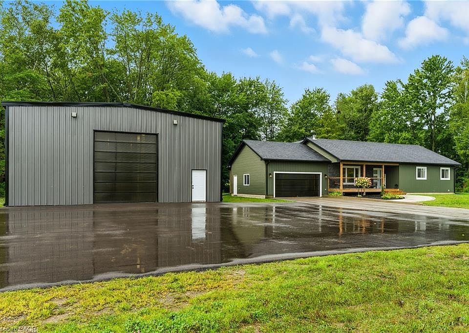 Discover the Ultimate Live-Work Sanctuary! Escape the city and embrace rural luxury at this stunning custom-built haven set on 3.81 acres of serene privacy. Boasting 4 bedrooms, 2.5 bathrooms and 2,436 sq/ft of modern comfort, this home features an open-concept layout, sleek upgrades throughout, and a cozy living room anchored by a timber-mantled gas fireplace - perfect for family gatherings or quiet evenings. Entertain or unwind on your 20' x 30' covered patio with overhead LED lighting, and a ceiling fan, making it the perfect place to BBQ for year-round enjoyment. The real showstopper? A 40' x 60' Kodiak steel shop - a commercial grade dream build in 2023. Complete with 19' ceilings, a Douglas-fir mezzanine office with built-in bar, heating, plumbing rough-in, dual oversized garage doors, and a cozy fireplace - this space is tailor made for entrepreneurs, artisans, truck drivers, or serious hobbyists. All of this comes with the lifestyle perks of Wilsonville - quiet country roads, a close-knit community, easy access to Highway 403, and just a short drive to Simcoe, Brantford, or Hamilton. Here, you'll find the best of both worlds: rural tranquility with every convenience still within reach. It's more than a home, it's a lifestyle: rural tranquility, space to work AND play, all minutes from town. If you're looking for the ultimate flexibility, reside, run your business, store and maintain equipment - this property will exceed your expectations.
