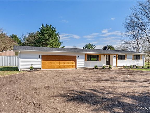 Opportunity is here!! 3bd 2 bath,, well appointed kitchen with new Samsung appliances and quartz counters. Many new updates,, furnace,, roof,, garage door gutters,, facia soffit,, and much more!! Property offers Large oversized 3 car garage 28x33. LARGE Pole barn 60x40 With water spicket.. 5.5 acre parcel that has a beautiful setting with hundreds of Mature trees .