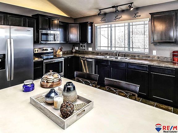 - Kitchen Desc: Cath./Vaulted Ceiling, Vinyl Floor, Window Covering, Dining Area, 9'+ Ceiling