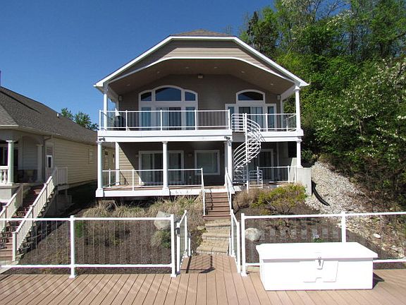 WOW! Was the first word out of my mouth when I stepped into the 10 x 17 foyer and gazed out at the beautifully open and stylish floorplan and on out to the panoramic water views. You'll love the vaulted ceilings, impressive master bedroom/bath set-up, and the equally expansive walkout family/rec room below. Each level has a large deck along with the XL deck over the permanent boatlifts. This a must-see-to-appreciate home...less than 5 years old and waiting for you and some fun!