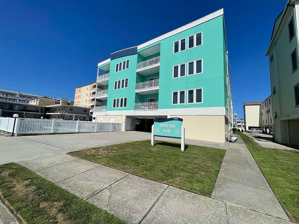 Unit 104 at The Hawaii Kai is a stunning end unit condominium and is located one short block to the awesome Wildwood Crest beaches and three blocks to Sunset Lake. This gorgeous home offers a beautiful open living space with loads of natural light and consists of the kitchen that boasts granite countertops, stainless steel appliances, electric cooktop with stainless steel hood vent, wall oven with built-in microwave and a large center island. The kitchen overlooks the spacious dining area and living room with sliders to the private, covered balcony that's a perfect spot for your morning coffee, afternoon refreshment or to curl up with a book. The spacious primary bedroom offers a private ensuite bath and ample closet space. There are three additional bedrooms and another full bathroom. This unit also has a utility/laundry closets. Hardwood floors throughout the living spaces with wall to wall carpet in the bedrooms and tile in the bathrooms. The Hawaii Kai complex offers an in-ground swimming pool with lounge chairs, and an area for grilling, an elevator, two assigned parking spaces and convenient, private storage room for beach chairs/toys, etc. The condo fee is collected quarterly and covers the common exterior insurances (flood, hazard, and liability), pool maintenance, elevator maintenance, and common area maintenance. Hot water heater was replaced approximately 3 years ago and AC unit was replaced in 2021. Take a look, you won't be disappointed!