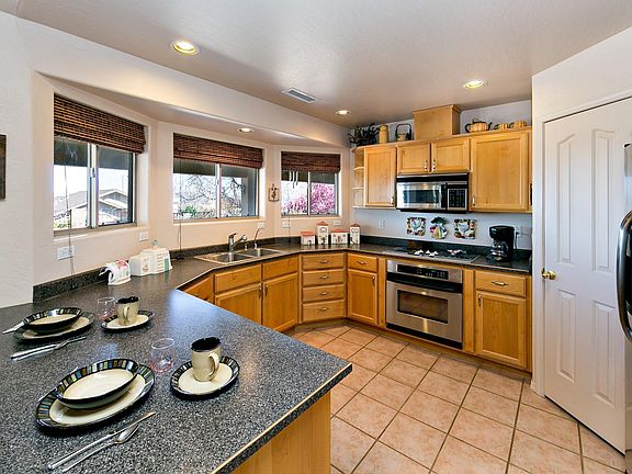 Lovely Viewpoint home with many upgrades. Fabulous rear yard and patio set up for entertaining, built-in BBQ, flowering Almond and Fig tree, berry vines. Courtyard entry done with flagstone and roses. Immaculate interior, engineered wood floors, pot shelves. Corner fireplace, upgraded stainless steel GE appliances, stainless steel sink. Split floor plan, private master with huge walk in closet, dual sinks, 2 separate guest bedrooms and full bath. Laundry room with sink. 3 car garage lined with built in storage and workbench.