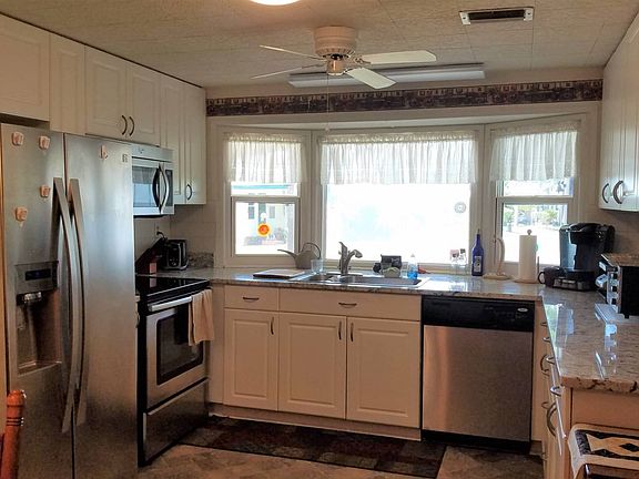 Just Reduced $25,000 - UNFURNISHED 1. Beautiful updated 2-bedroom 2- bath home. 2. Gorgeous kitchen with new cabinets, granite counter tops and stainless-steel appliances. Nice ceramic tile floors. Plenty of cabinet and counter space. Large Bay windows giving the kitchen plenty of light. 3. The Living room and dining room are open. Both the rooms, hallway and front Florida room have vinyl flooring. 4. The front Florida room is enclosed with new windows. Great space to relax and enjoy your breakfast or read a book. 5. The guest bedroom has plenty of storage space. A double-sided closet and a step-in closet. This room is spacious. New carpeting in 2015. 6. Guest bathroom and Master bathroom showers have been redone by bath fitters. Master bathroom has been painted and a new toilet was installed March 2020. 7. Master bedroom is very large. It easily accommodates a King-sized bed and dressers with plenty of room to move around. Large walk-in closet and double-sided closet giving you plenty of storage space. 8. Inside laundry room with washer, dryer, and a deep soaking sink. 9. Side enclosed lanai with new flooring. The screens in the lanai have been replaced in 2017. 10. Large storage shed for all your tools, beach gear and holiday decorations. 11. New roof over the whole house and carport August 2015, with a transferable warranty. 12. Water heater was replaced December 2015. 13. The gorgeous front door was installed December 2015. 14. Gutters and downspouts were done January 2018. 15. The kitchen floor and vapor were done March 2018. 16. Most the windows throughout the home are updated and new. 17. The electrical has been updated. New electrical, panel box and wiring March 2017. 18. Great Location! Near Harmony Hall and Pool. 19. This updated home is priced to sell! Call today to make this your dream home! ACT FAST & CALL TODAY!! Do not forget to ask about the BANK FINANCING available on this home. Colony Cove is an age qualified (55+) five-star resort community of manufactured / mobile homes. The "Cove" boasts 5 clubhouses, 5 heated pools, a riverfront pavilion and private fishing pier, a private marina, a fenced dog park (very pet friendly), tennis, shuffleboard, new pickleball courts, 2 new fitness rooms, 24-hour patrol, clubs for every interest, and much more. There are daily planned activities throughout the park. Bottom line, if you get bored here, it's your own fault!! The lot rent in Colony Cove is based on the homes' location. While the monthly rent may not be the lowest around, it's by far the best value for the money. Not only does the monthly rent cover all of the amenities of the community listed above, it also covers almost all other monthly expenses such as; water, sewer, trash pickup, all property taxes, lawn maintenance. . .pretty much every monthly expense except electricity. The current lot rent on this home is estimated at $880.66 per month. All listing information given to us is considered appropriate and reliable but always recommend Home Inspections by independent companies who have a background and thorough understanding of manufactured homes. We cannot guarantee the accuracy of information given to us or the condition of the home. Lot rents are determined by the community office not our company.
