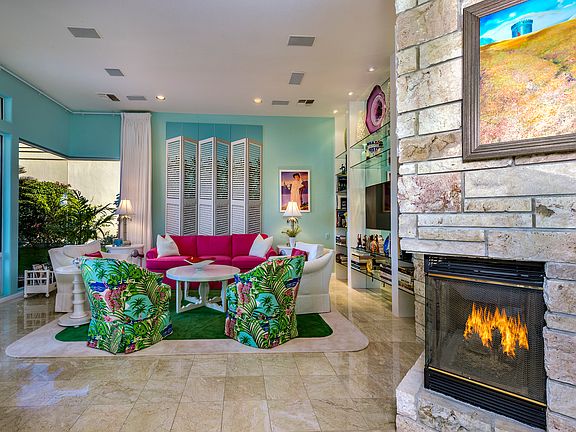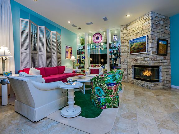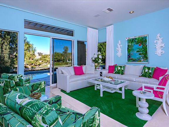Design, location and price! A stunning home by one of America's best-known interior designers, Carleton Varney, president and owner of Dorothy Draper and Company, Inc. The decor is exquisite and resembles some of Mr. Varney's best results. You will find the finishes to be perfectly matched to the overall theme of the home. In addition, upgrades include a chef's dream appliance package, HVAC units, a gorgeous pool and spa plus a generous separate casita with bath. Other features include three fireplaces, a dining area, surrounded by walks of glass, an exquisite wet bar and formal living area. The kitchen is open and bright to the family room with ample banks of cabinetry, granite counters an easy access to the entertainer's back yard. Perfectly situated for privacy overlooking bridges, lagoons and water features. This fine home is beyond compare. Furnishing package maybe available outside of escrow.