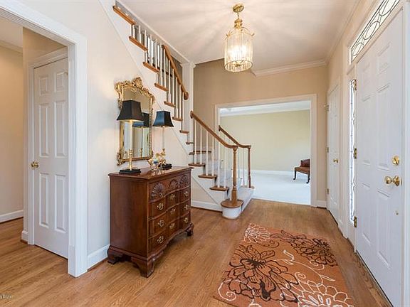 This gracious Streibel built home is beautifully situated on a 1.3 acre lot surrounded by mature trees. The home features 9' ceilings on the first floor, a large eat-in kitchen with a vaulted breakfast area and and new appliances, a spacious family room with a woodburning fireplace with built-in bookcases, all new carpeting, a lovely master suite with a sitting room, a huge walk-in closet and a master bath with a jetted tub, his her vanities and a separate shower. There are 3 additional bedrooms on the second floor, a large hall bath with dual sinks and two of the bedrooms have an adjoining bath. There is a walk-in attic on the third floor that could be finished or used for additional storage.The walkout basement is ready to finish and is plumbed for another bathroom.