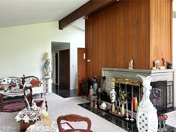 Unique stone veneer Ranch on one acre of land in the West Geauga School System. Open floor plan with Vaulted ceilings and many Skylights throughout. The Kitchen has granite countertops with a vaulted beamed ceiling and a skylight. Enjoy your meals in the dinette area that opens onto the patio in the back. Formal L- shaped Dining Room and Living Room, vaulted ceiling, wall of windows, and a corner woodburning fireplace accents this spacious area. Spacious vaulted beamed ceiling Family Room with skylights for added sunlight. Three bedrooms and 1.5 baths, the half bath which could be converted to a full bath. Extensive flag stone walkways and patio surrounds this one floor living home. And don't forget the U-shaped cement driveway. Close to the Freeways and Shopping.