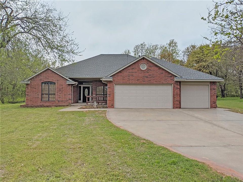 1.77 Acre tree-lined lot and a true 4 Bedroom PLUS study, only 10 minutes from Tinker in the Choctaw School district. New Paint and carpet throughout! Durable laminate wood flooring in the living room with a corner, wood-burning fireplace. Large kitchen with island, pantry, above cabinet lighting, and a window overlooking the living room! TONS of storage! The Master bedroom is nearly 16' x 13' and has a triple trayed ceiling. Huge Australian (wrap around) closet, jetted tub and separate shower. Double sinks. Separate toilet room. Large covered back patio with a small fenced area behind the house for our pets and little people!
