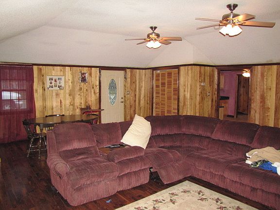 Nice 3 BR, 1BA ranch home w/unfinished walkout basement, hardwood floors throughout, 2 car garage in basement, sitting on approx 8 acres fenced w/beautiful pond!