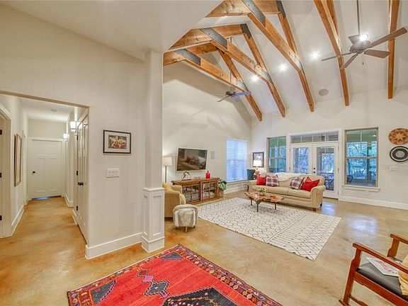 Open concept home with 10 foot plus ceilings. Screened in back porch. Stone and Hardy board construction. Great lot with massive Oak trees. Runs street to street, water, sewer, mail delivered close by. Enjoy excellent Hollows amenities.