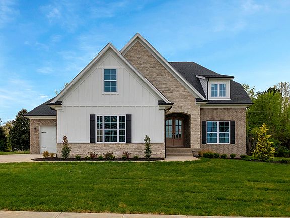 Beautiful spacious home nearly ready to move in and add your own personal touches! Located on a dead end street in the amenity-filled Brentwood subdivision in Oldham County, this 4 bedroom 3 1/2 bath home has lots of charm. Limestone, brick, and board and batten facade, 3 car garage, stone archway entry, and gorgeous solid wood double doors are sure to make an impression. Formal dining area with tray ceiling and crown molding connects to the good sized kitchen through butler pantry with upper and lower cabinets and a double sized pantry closet. The island is a statement piece with its beautiful quartz countertop and furniture style finish. The elegant white cabinets extending to the ceiling have glass front, backsplash tile to ceiling around built-in hood, as well as undercabinet lighting. Dark gray leathered granite top the cabinet surrounds with mixed nickel and matte black hardware and lighting. The kitchen is open to a breakfast nook as well as living room. The owners bedroom has double hip vaulted ceiling, an ensuite bath with quartz- topped double vanities, freestanding soaker tub, a large sleek glass shower and a walk-in closet. Mixed metals is the continued theme with brushed brass and chrome finishes. Upstairs is a large loft area for media room, 2 bedrooms with jack and jill baths, and a third bedroom with private bath. The basement has large open expanses ready to be finished with roughed in bath and bar and window well for future bedroom. The covered porch adds great outdoor living space and yard is relatively flat and great for a pool or playground. Upgraded GE Profile appliances and LED lights a bonus.
