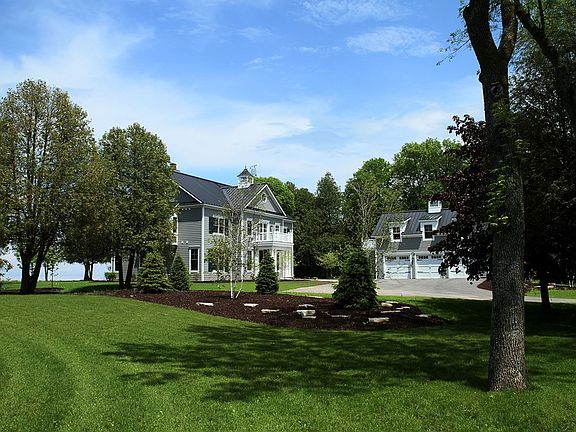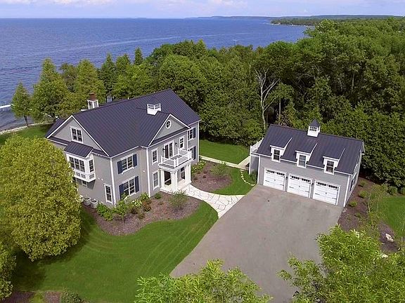 Sweeping water & astonishing sunset panoramas are the hallmarks of this distinctive 1.2 acre waterfront estate. Unique architectural features & distinctive accents abound throughout this spacious 5700 sq.ft. show place. There are multiple and expansive living & entertaining areas both inside & out which provide commanding water views. Six ensuite bedrooms for privacy and comfort. An open concept gourmet kitchen with several dining areas is ideal for family gatherings. The second floor terrace with wet bar is the perfect setting where you can enjoy the spectacular sunsets. A large game room is optimal for leisure activities. The charming 1 bdrm coachhouse provides additional space for guests. The ultimate Door County family vacation home!