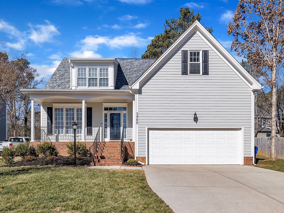 MOVE-IN-READY, UPDATED home in desirable North Raleigh neighborhood! Renovated kitchen with new appliances, 2 ovens, quartz countertops with large, oversized island, lots of storage! updated bathrooms, refinished REAL hardwood floors throughout downstairs & staircase, with high-end flush mount venting. 1st floor primary bedroom with large walk-in closet. Grand 2-story stoned gas fireplace in living room with vaulted ceilings. formal dining, 3 bedroom & large bonus room. walk-in storage space upstairs. New HVAC & all new duct work on main level. Beautiful, screened porch and fenced yard. all new light fixtures & ceiling fans throughout. North Ridge area, close to shops, 540/440... great location!