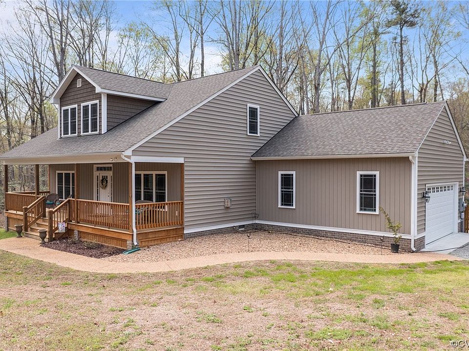Welcome to this beautiful meticulously maintained Cape that sits on 5.61 acres with 400ft+ of water frontage on Lake Sertoma. This 3 BR, 2 1/2 BA features 2195 sq. ft., 23x23 side load 2 car garage w/direct entry, open concept Family Room & Kitchen with wood floors, gas f/p, quartz countertops, eat-up bar, island, dining area, pantry and s/s appliances. 1st floor primary suite w/WIC, 2 vanities, tiled shower and lge. linen closet. Office, utility room and 1/2 bath on 1st floor. Add 'l. 2 BR's on the 2nd floor with an open game room and full hall BA w/double vanity. Add' l features include large front porch, maintenance free vinyl siding, 16 x 12 screened porch, wooden deck & rear fenced yard. Bring your paddle boat, kayak/canoes to your very own piece of country living at its best on this waterfront lot of lovely 22 acre Lake Sertoma. No gas motors allowed. Location is always key with only 20 min from Williamsburg & Richmond. Other close amenities include additional waterways, wineries, golf courses and Colonial Downs horse racing. Don't miss out! This is a Must See Property!!
