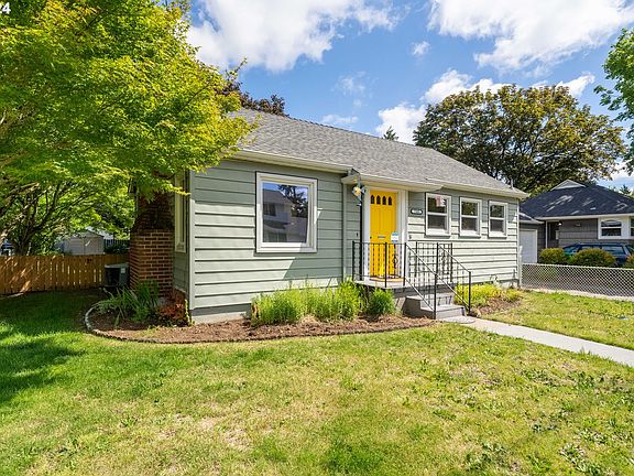 Quaint & Chic updated bungalow just a 1/2 block from Essex Park. The light & bright main floor features 2 bedrooms, 1 bath, a modern kitchen with a charming banquet, butcher block countertops with an eating bar that opens up to a spacious living room of gleaming hardwood floors and a fireplace for those cozy winter nights. The remodeled lower floor features 2 Bedrooms (non-conforming), 1 bath, a family room & utility room. The exterior is complete with vinyl siding, windows & newer roof. Attached one-car garage, covered patio, fenced dog run & large fully fenced yard large enough for your garden, pets or possible ADU? This charming home sits on a quiet street with a 99 bike score and an 84 walk score! [Home Energy Score = 6. HES Report at https://rpt.greenbuildingregistry.com/hes/OR10229353]