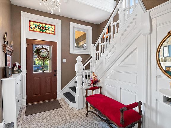This charming 134yr Victorian home is nestled in the heart of a quaint neighborhood, offering a seamless blend of historic charm & modern-day comforts. This home boasts hardwood floors, marble flooring(entryway), 10' ceilings & an abundance of windows bathing the rooms in natural light. The main level seamlessly connects the living spaces including an EI kit, sep dining rm, mf laundry, a home office providing a tranquil space for remote work ideal for today's lifestyle & a spacious family rm overlooking the level yard w/a newer deck & fence. The living rm includes a bay window, nf fireplace & BI cabinets/shelving. Upstairs, 3 bdrms offer comfort & privacy, w/2 full baths ensuring convenience for the entire household. The level & fenced yard is spacious enough for kid/pet play, gardening & still enough room to add a garage! Whether you're captivated by the historic allure, the modern amenities or the convenient location, this Victorian gem embodies the best of both worlds!